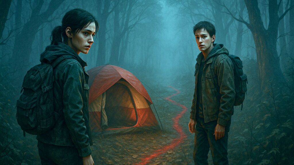 Adriana y su hermano Tomás acamparon en un bosque alejado del pueblo. Les habían advertido que no siguieran el sendero rojo, un camino oculto entre la niebla. Pero la curiosidad venció al miedo.