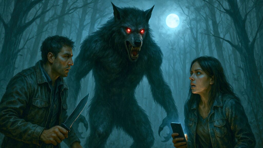 Esteban sacó un cuchillo, Carla encendió el celular. Nada funcionó. De los árboles emergió un ser bípedo, cubierto de pelo, con colmillos largos y ojos que reflejaban la luna.