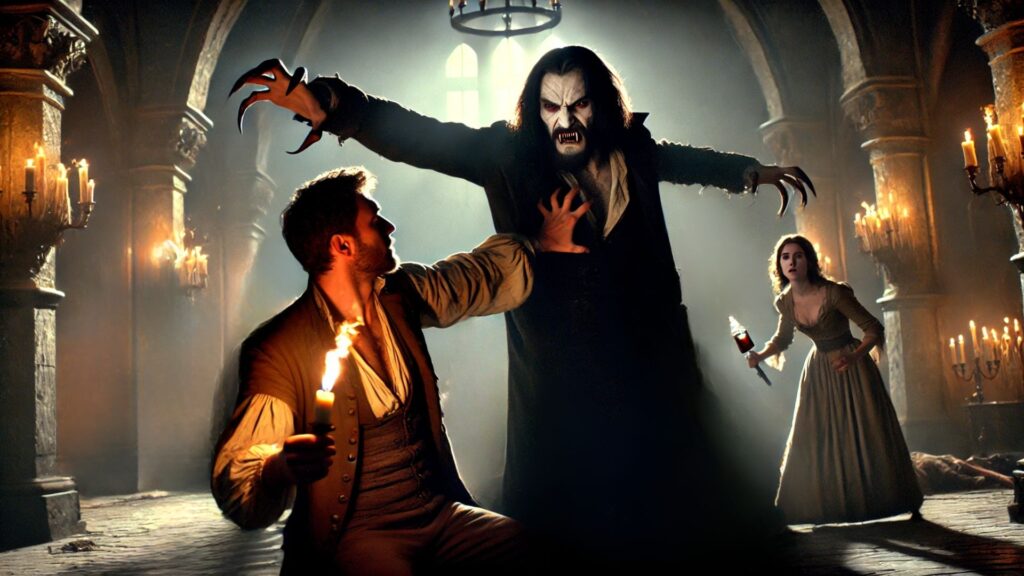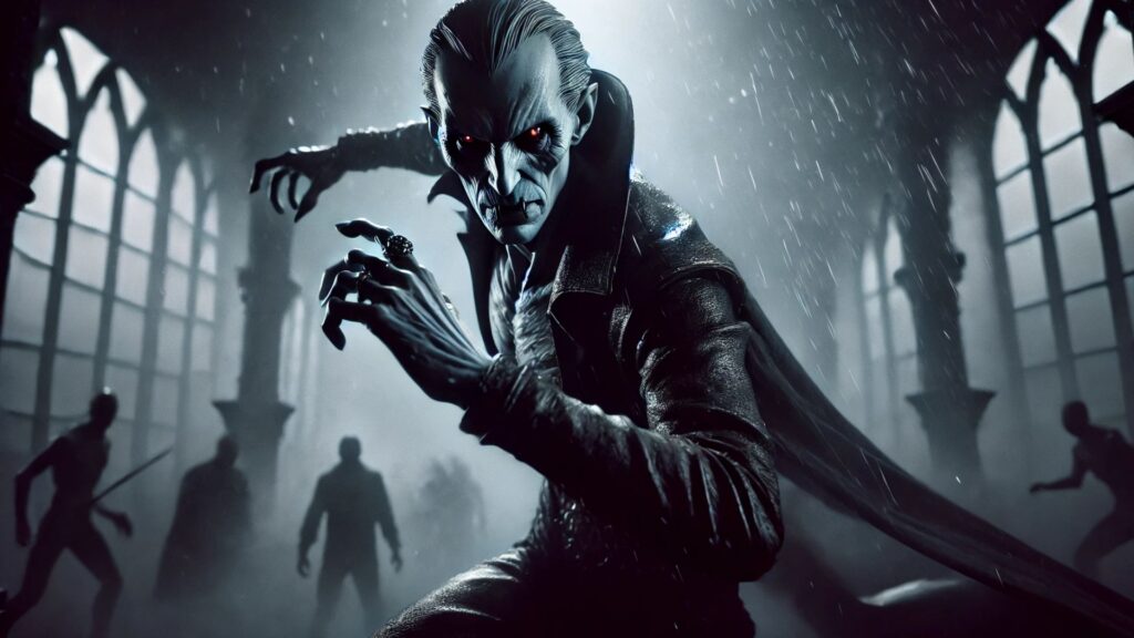 Nosferatu se movió con velocidad imposible. En un parpadeo, ya estaba frente a Viktor. Un zarpazo bastó para lanzarlo contra un pilar. El anciano cayó al suelo, inconsciente.
