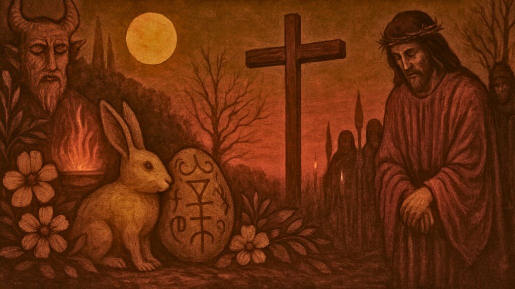 El origen de esta festividad encuentra ecos en cultos a diosas como Ēostre o Ostara, veneradas en las culturas germánicas y vinculadas a la primavera, el renacer de la tierra y el paso del invierno. Elementos como los huevos y los conejos, símbolos de fertilidad y renovación, representan la continuidad de este rito antiguo, combinando lo natural con lo sagrado mediante un lenguaje simbólico teñido de sangre y deseo de abundancia.
